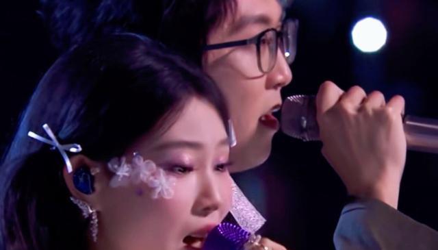 镜头捕捉到她僵硬的表情、泛红的眼眶,以及慌乱中瞟向提词器的眼神,被观众形容为“快哭出来”,中途还曾挣脱毛不易试图安抚的手,足见内心的焦灼。与之形成鲜明对比的是毛不易的稳如CD,他不仅全程音准在线,还悄悄删减和声、调整节奏为搭档兜底,即便镜头捕捉到他几丝“面露难色”的微表情,也始终保持专业素养,完成了教科书级别的救场。